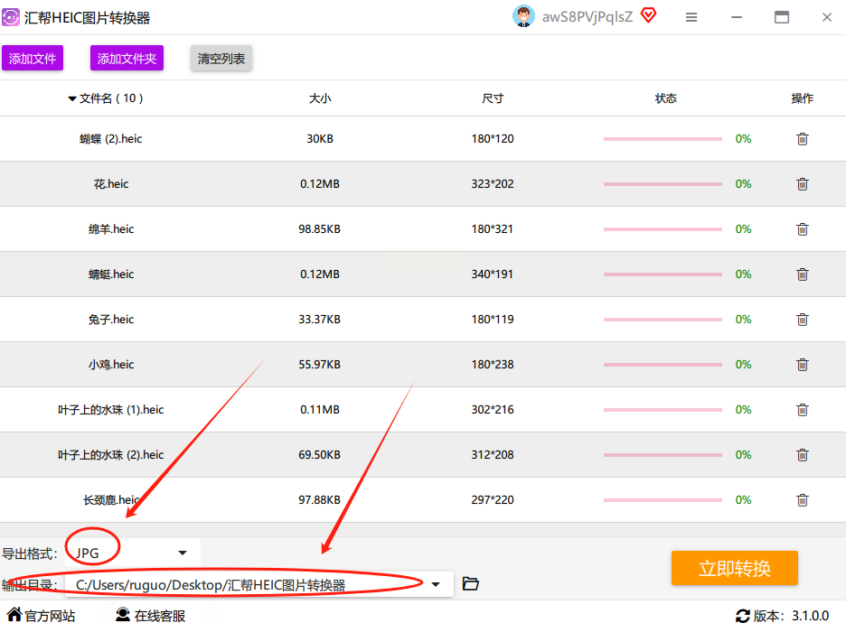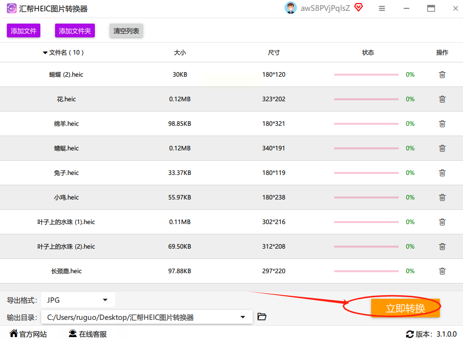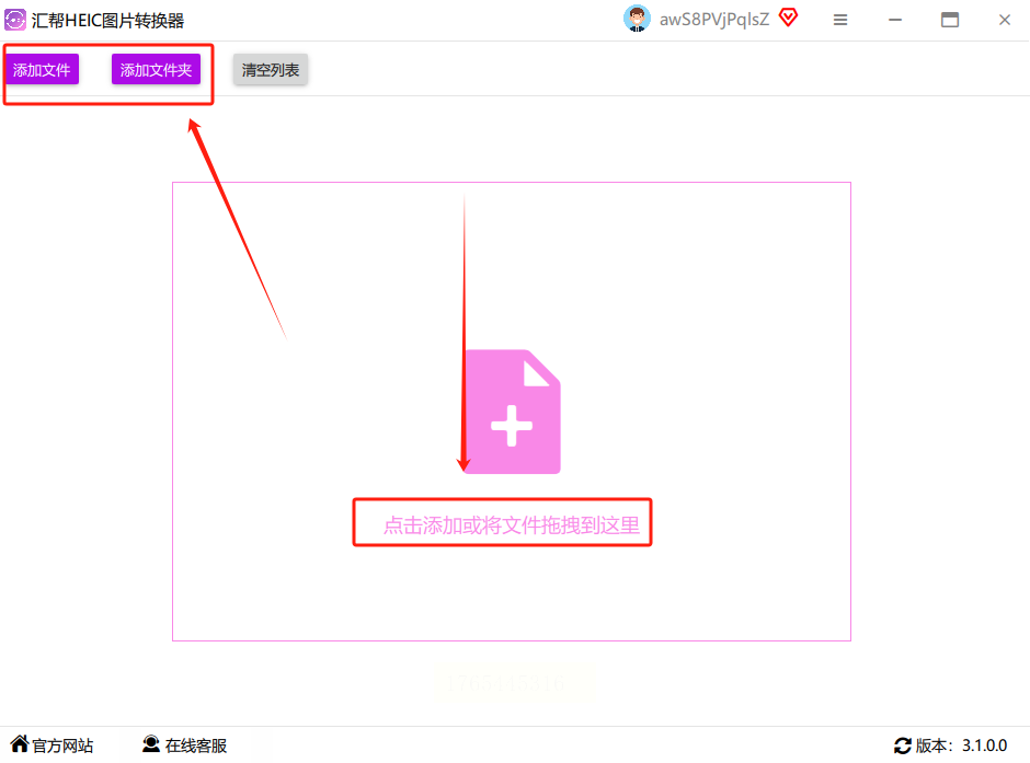 2. 添加文件:点左侧"添加文件",或者直接把HEIC图片拖到中间空白处,支持批量导入哦!我上次一次拖了20张照片,它都能识别出来