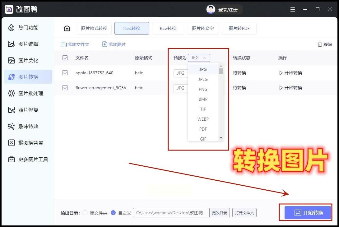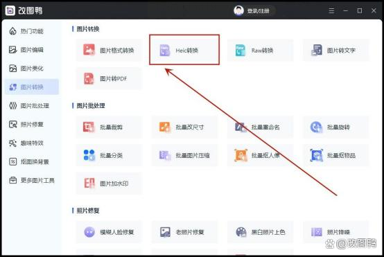 2. 选功能:在首页找到"HEIC转换",点进去就好