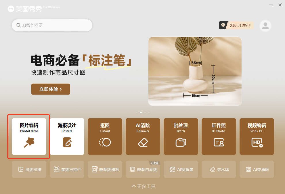 电脑端:打开美图秀秀PC版,点击【图片编辑】,导入HEIC图片。