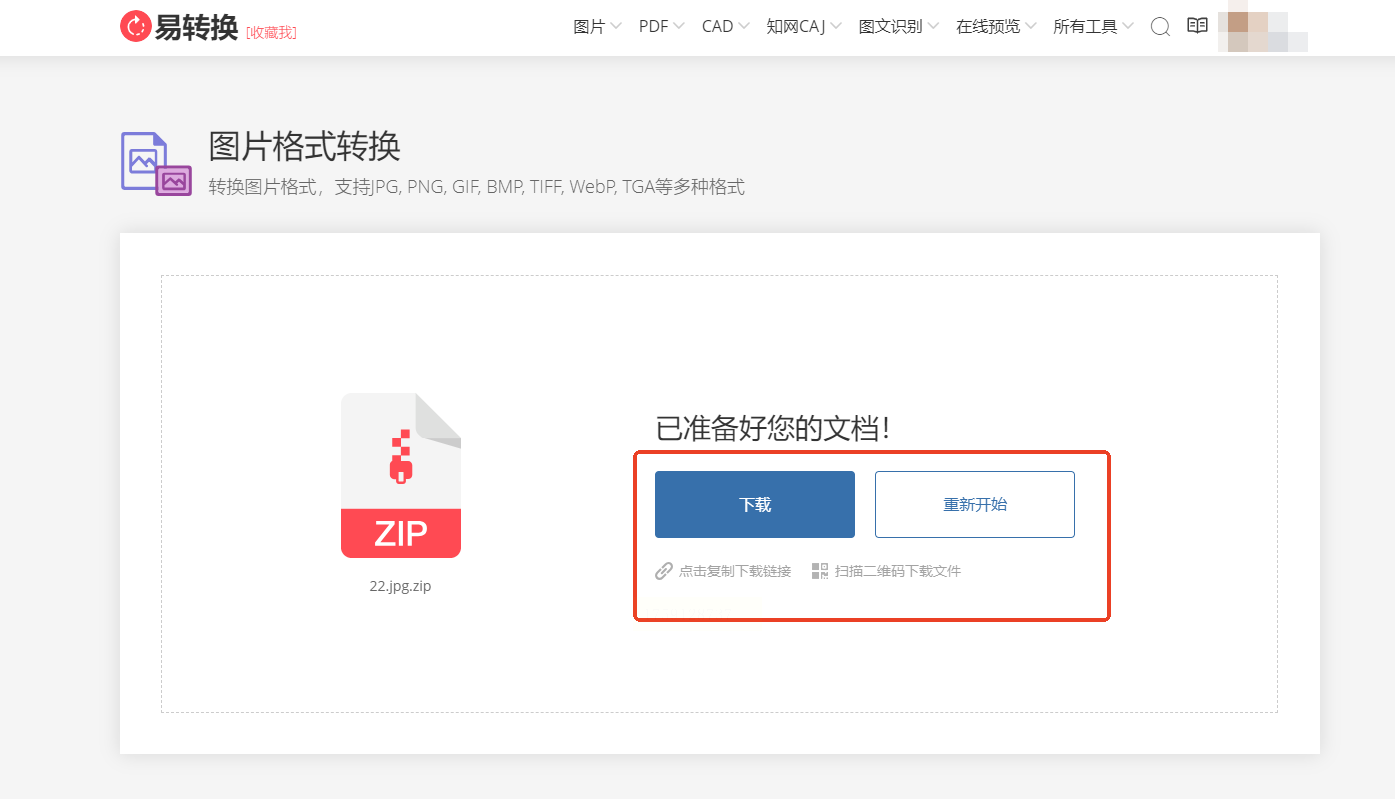 点击【智能转换】按钮后,平台会自动处理图片。转换完成后,页面会显示下载按钮,点击【下载】即可获取转换后的JPG文件。如果是多张图片,会自动打包成压缩包。