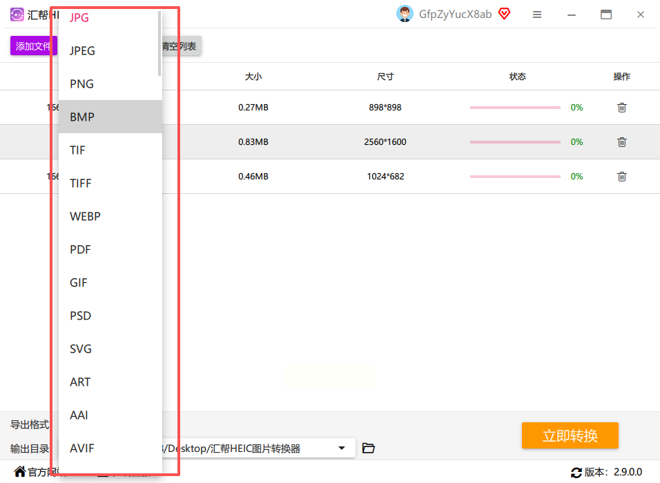 点击【添加文件】按钮,批量导入需要转换的HEIC图片(支持一次导入数十张)。