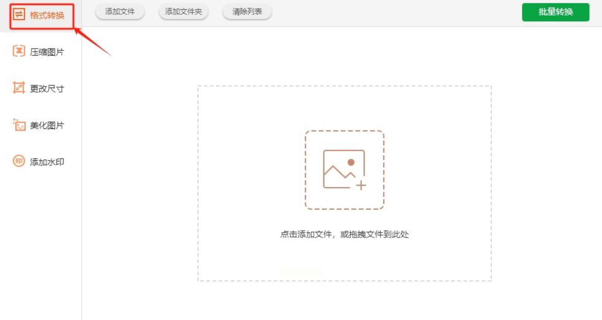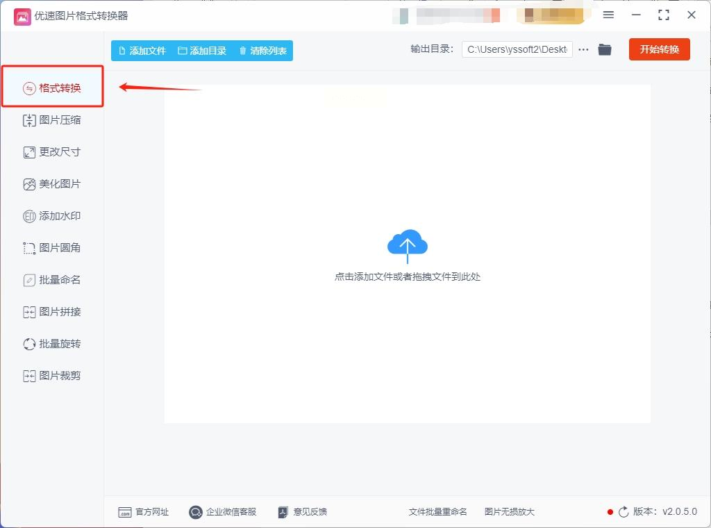 下载并安装“优速图片格式转换器”后,启动软件。在左侧功能列表中,选择“格式转换”选项,进入核心操作界面。