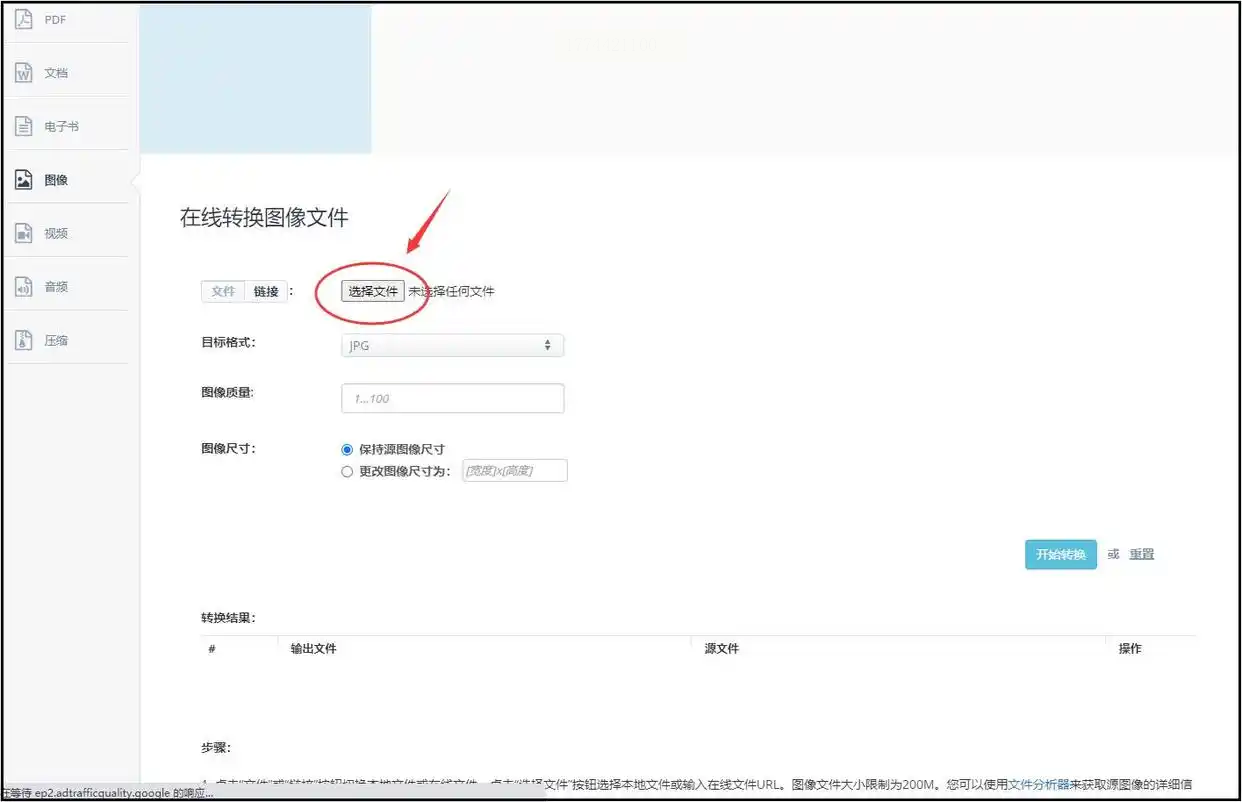 3. 点击"选择文件"按钮,从本地电脑中选择需要转换的HEIC图片。