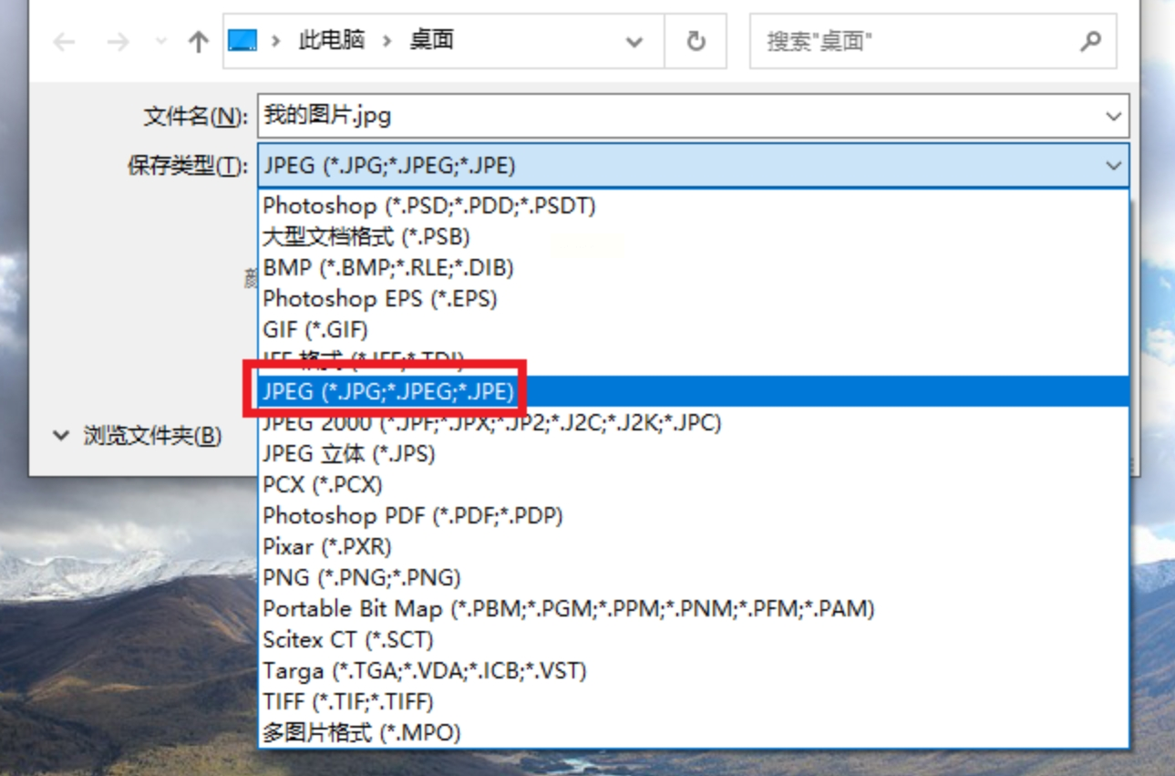- 点击“文件→存储为”,在弹出窗口的“保存类型”下拉菜单中选择“JPEG”。