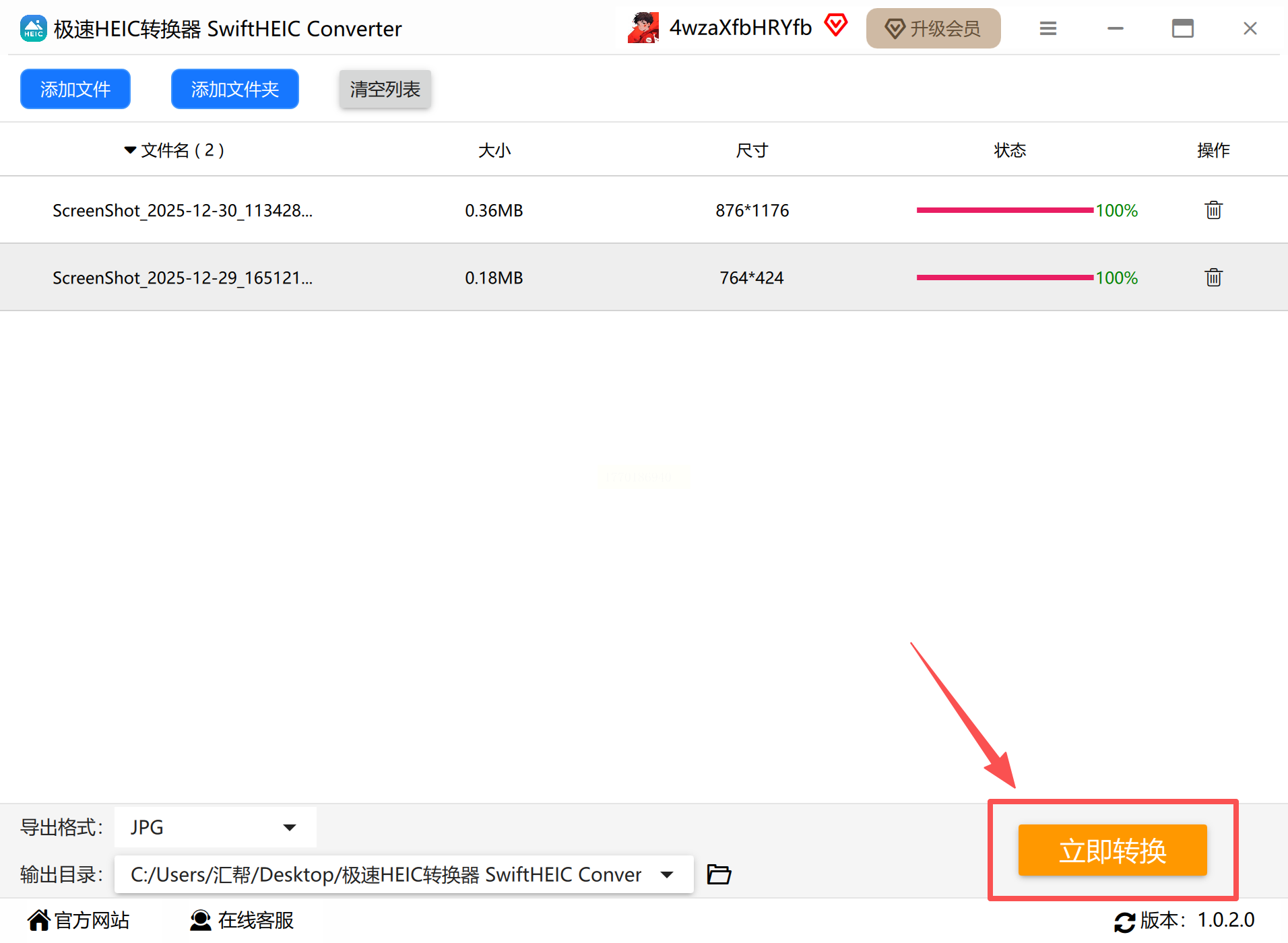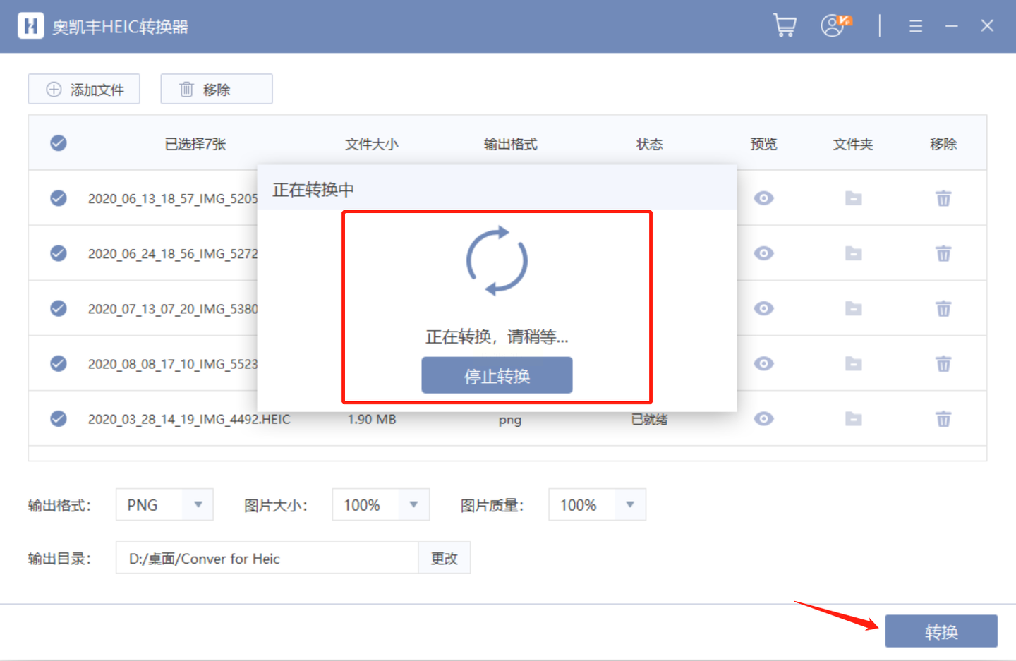 4. 确认输出路径无误后,点击「转换」按钮,软件会显示每张图片的转换状态