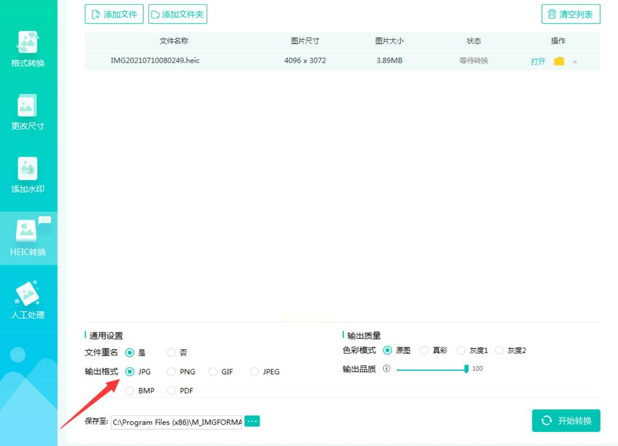 4. 开始转换:点击“开始转换”,等待进度条走完,在“已转换”文件夹里找到JPG图片,分享或保存即可。