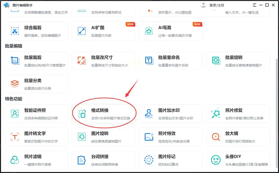 步骤一:打开软件,在功能主页面上,找到并点击“格式转换”功能模块。