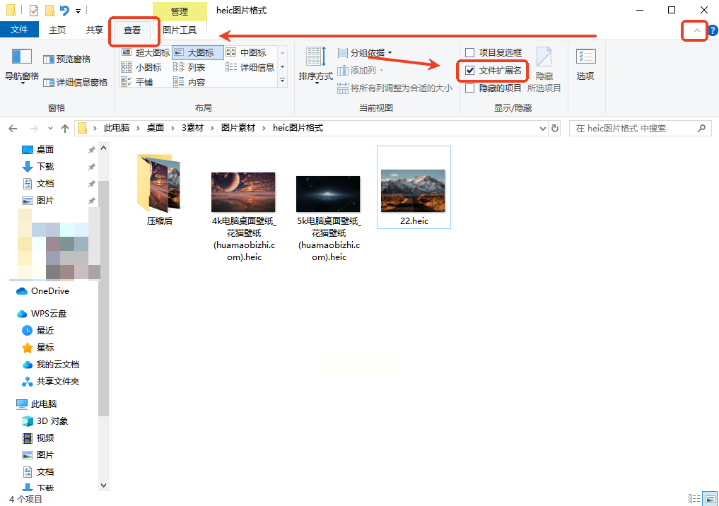 1. 先打开你放HEIC图片的文件夹,在上方菜单栏找到“查看”选项,勾选“文件扩展名”。这样你才能看到“.heic”这个尾巴。