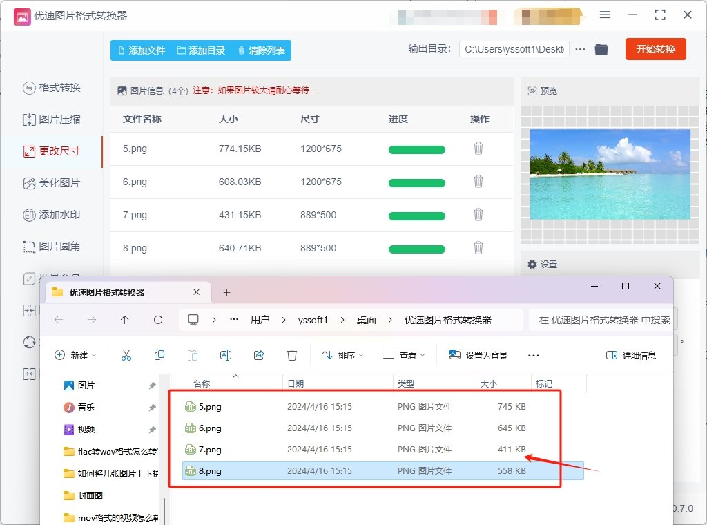 4. 点击右上角的“开始转换”按钮,软件将执行缩小操作。处理完成后,会自动打开输出文件夹,方便用户查看结果。