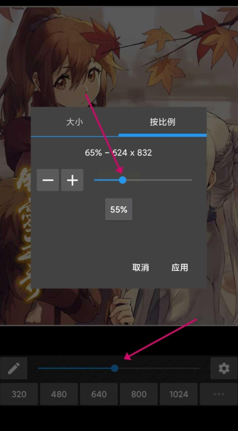 3. 通过滑动比例滑块或直接输入百分比数值来设定缩小比例。为确保图片不变形,请注意保持“锁定宽高比”或类似选项为开启状态。