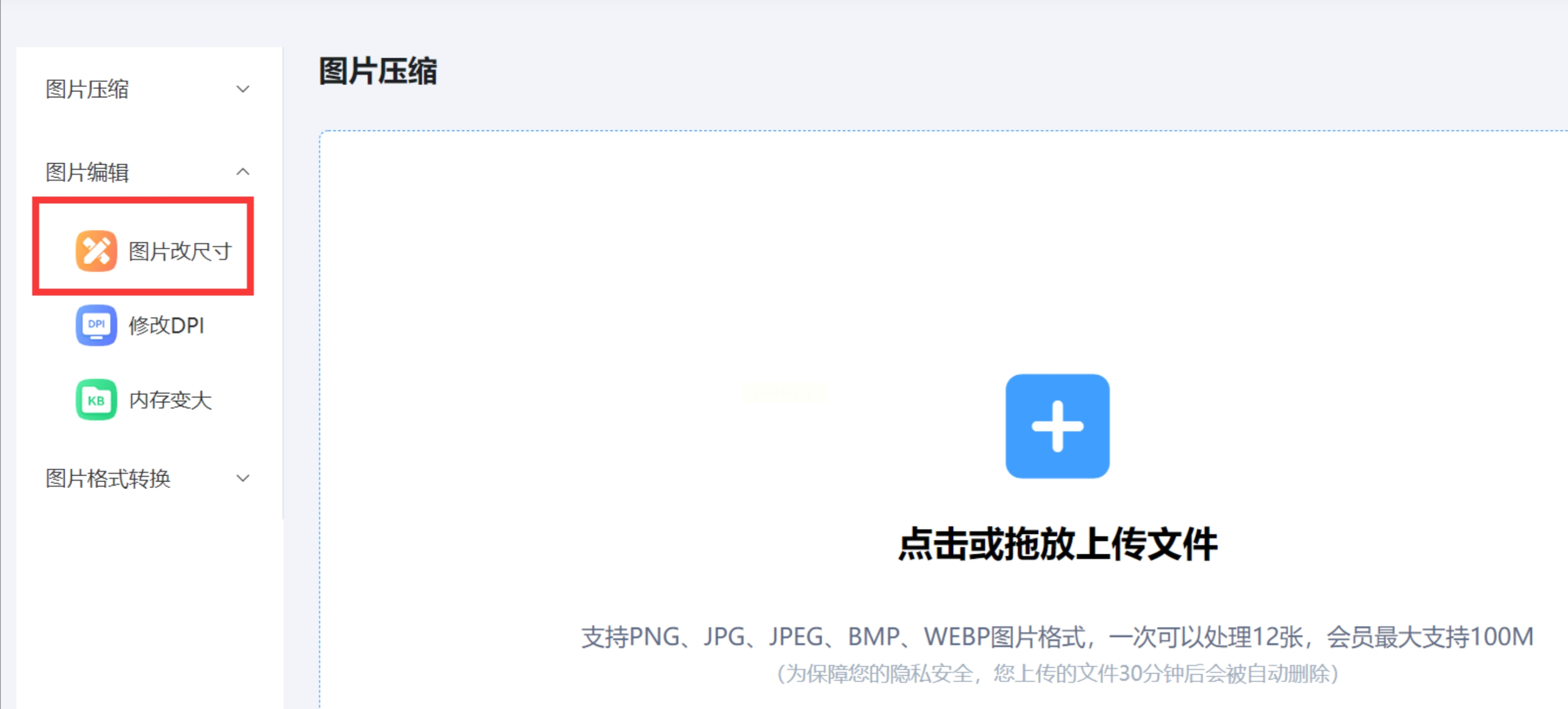 2. 点击上传区域,从本地设备中选择需要缩小的图片。上传后,页面会显示尺寸设置选项。