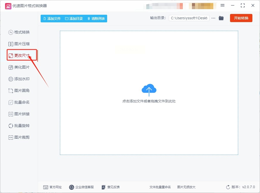1. 在电脑上安装并打开“优速图片格式转换器”,从左侧功能列表中选择“更改尺寸”。