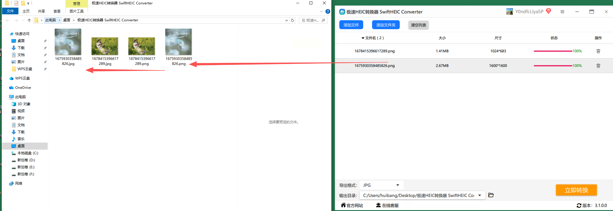 步骤四:所有设置确认无误后,点击"立即转换"按钮,软件会开始处理图片,进度条会实时显示转换状态,整个过程通常只需几秒钟。转换完成后,系统会自动打开保存文件夹,你就能看到保留原图的同时生成的JPG文件了。