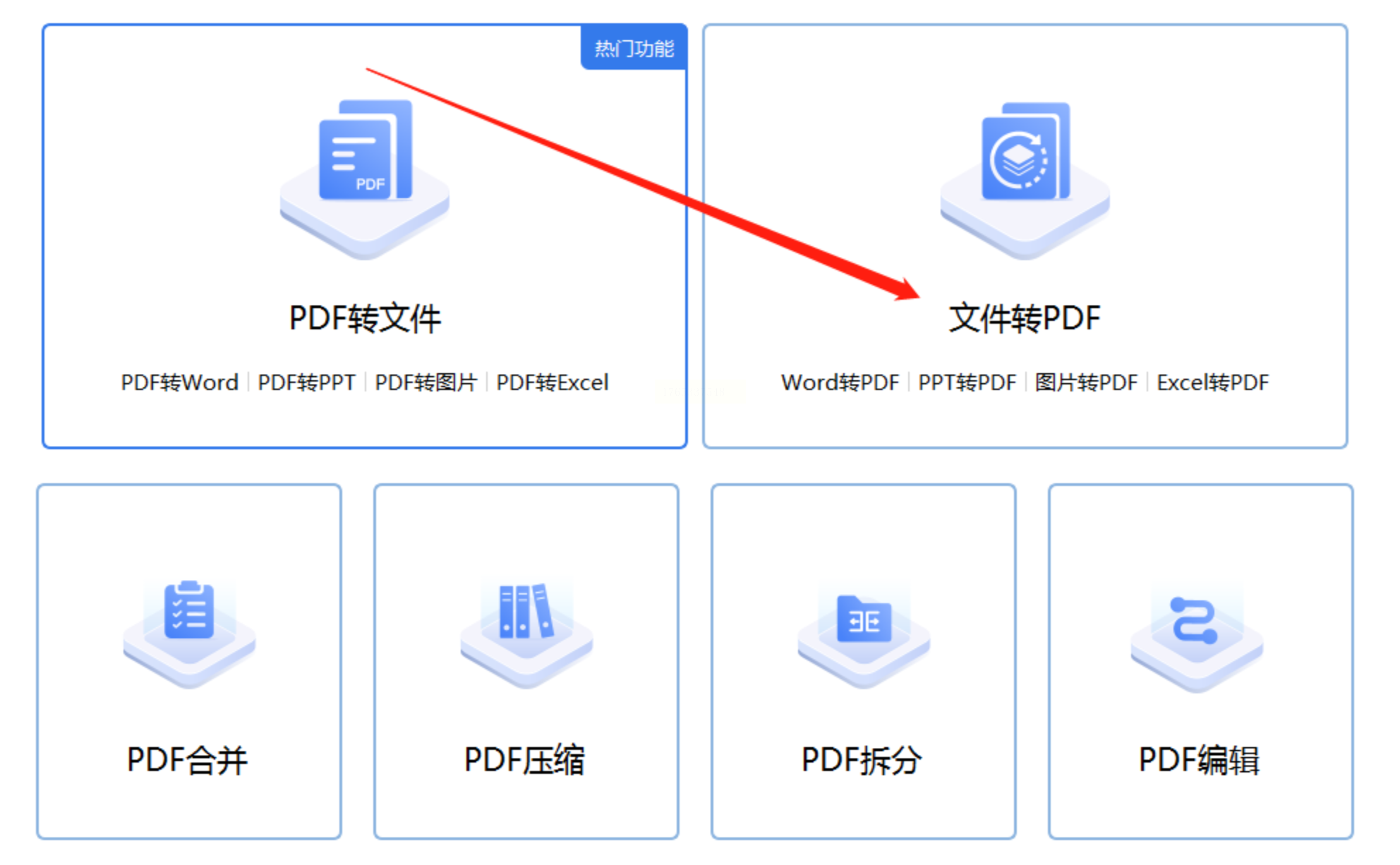 步骤一:运行软件,在主界面选择“文件转PDF”大类,然后在其子选项中找到“图片转PDF”。