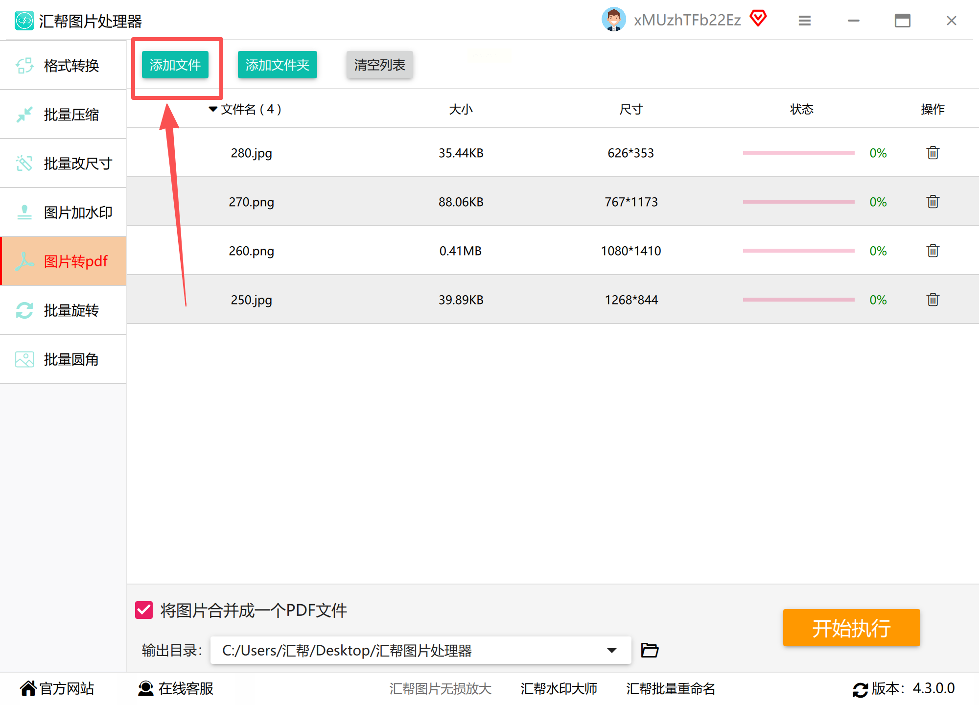 步骤二:通过点击“添加文件”按钮或将图片文件直接拖拽到软件窗口的指定区域,来导入需要转换的图片。软件支持批量添加,能大幅提升处理多张图片时的效率。