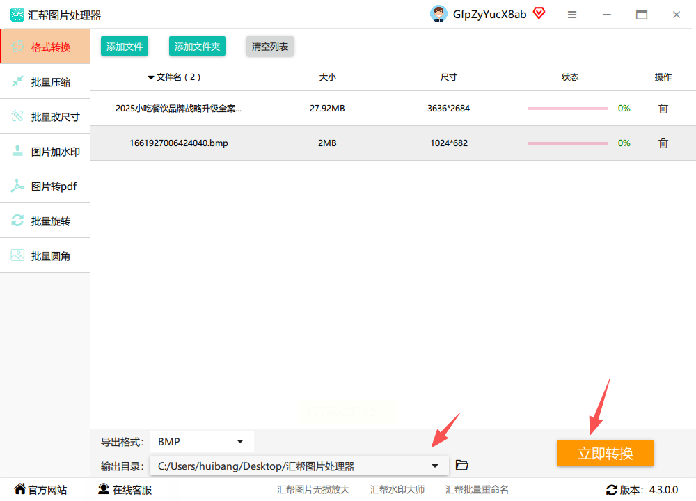 汇帮图片处理器,支持JPG/PNG/BMP、webp、苹果heic等图片一键批量转换、图片批量压缩、图片尺寸修改、图片添加水印等功能