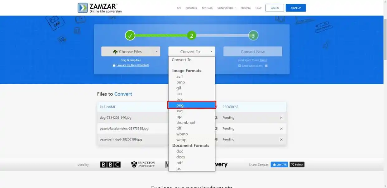 3. 在“Convert to”下拉菜单中选择“PNG”格式,系统默认保留原始分辨率参数