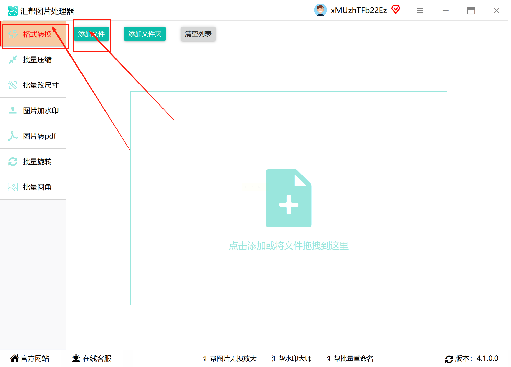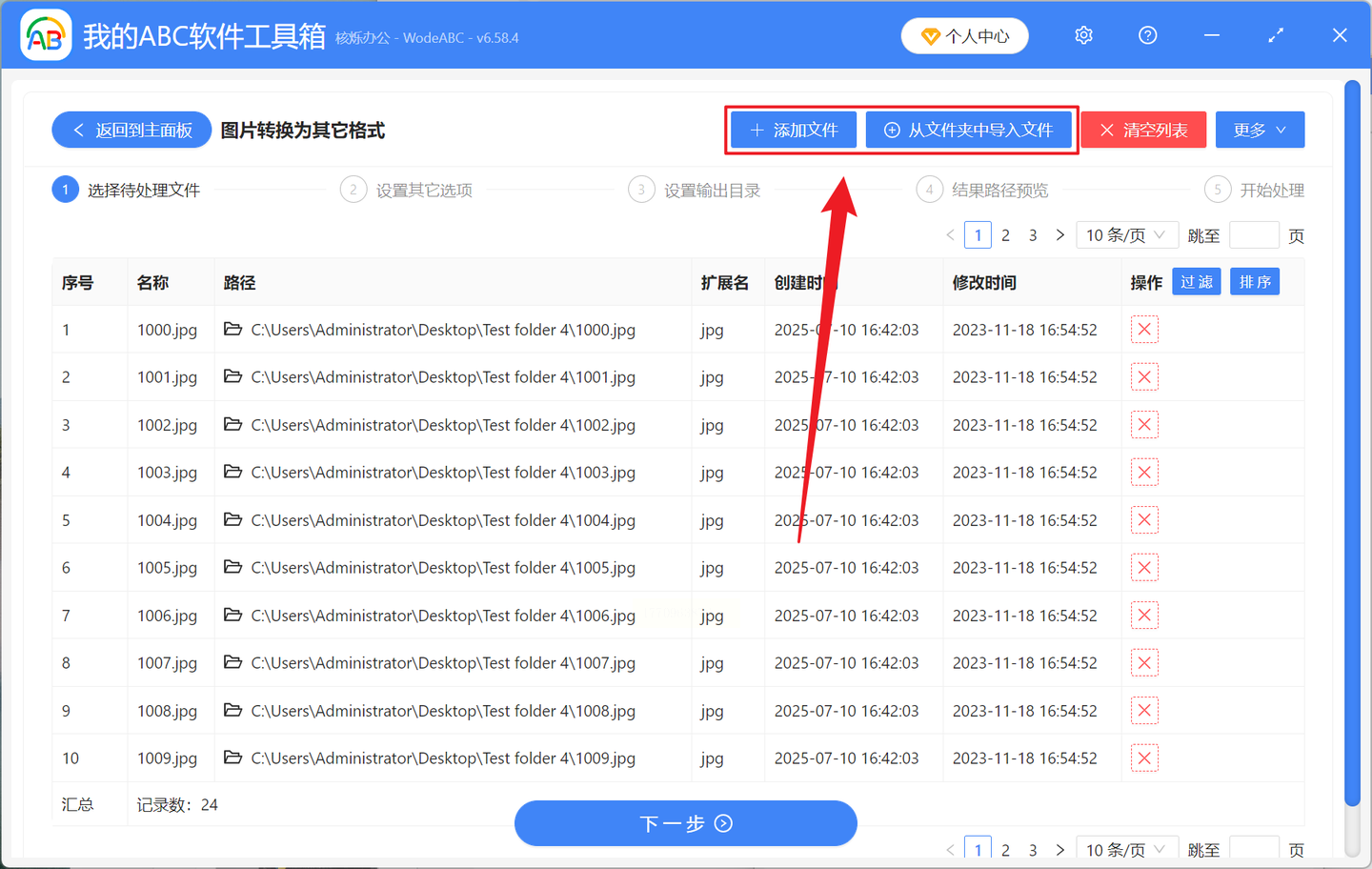 2. 批量导入:点击“添加文件”按钮,支持单张或批量拖放JPG文件,界面会显示所有待处理图片的缩略图预览。