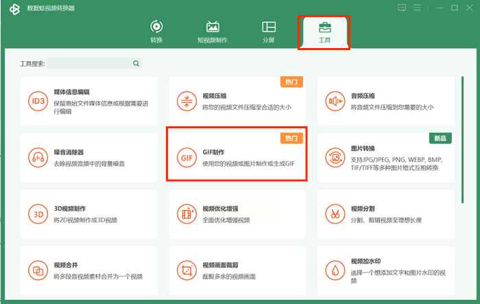 1. 功能选择:打开软件后,在首页点击“工具”→“GIF制作”,进入GIF处理主界面。