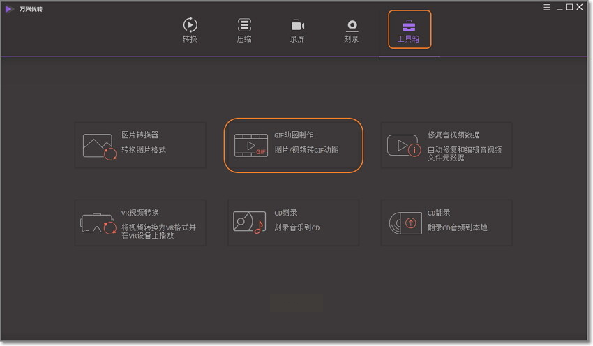 1. 启动与导航:安装后打开软件,点击顶部“工具箱”,在功能列表中找到“GIF动图制作”模块。