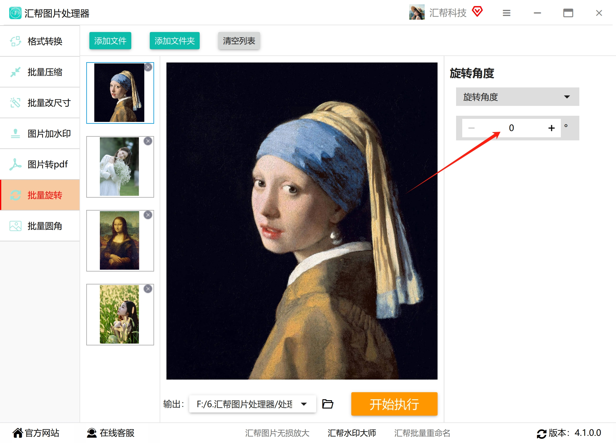 3. 在底部的输出处选择一个目录,用于存放被旋转后的图片。
