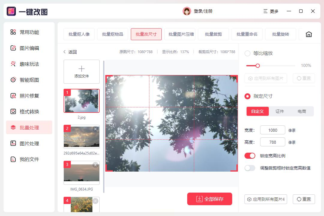 步骤三:点击“全部保存”按钮,软件开始处理。完成后,图片会自动导出到指定文件夹,你可以直接使用。