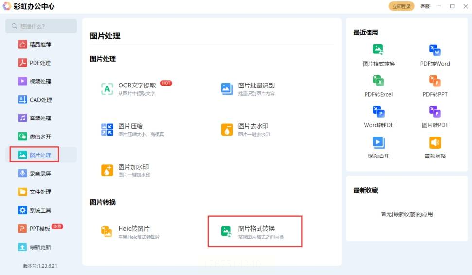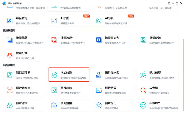 1. 打开软件后,左侧导航栏选择“图片处理”→“格式转换”