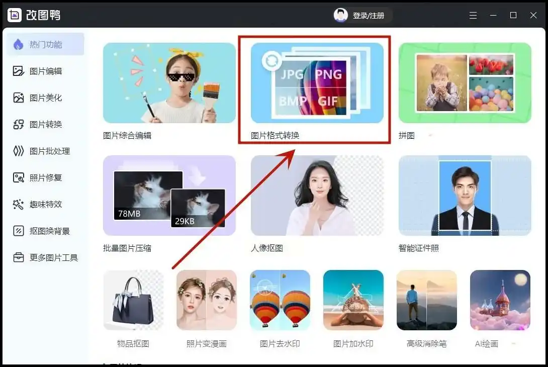 1. 打开平台首页,点击“图片格式转换”功能模块