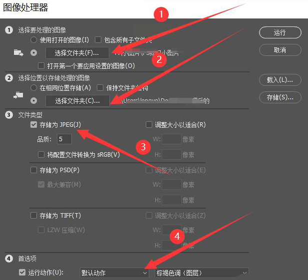 点击「运行」,Photoshop将自动处理所有图片,完成后可在目标文件夹查看结果。