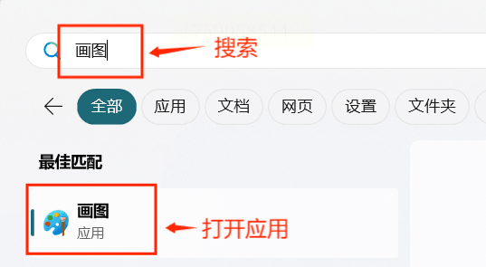 步骤一:点击开始菜单,在搜索栏输入"画图",打开系统自带的画图软件。