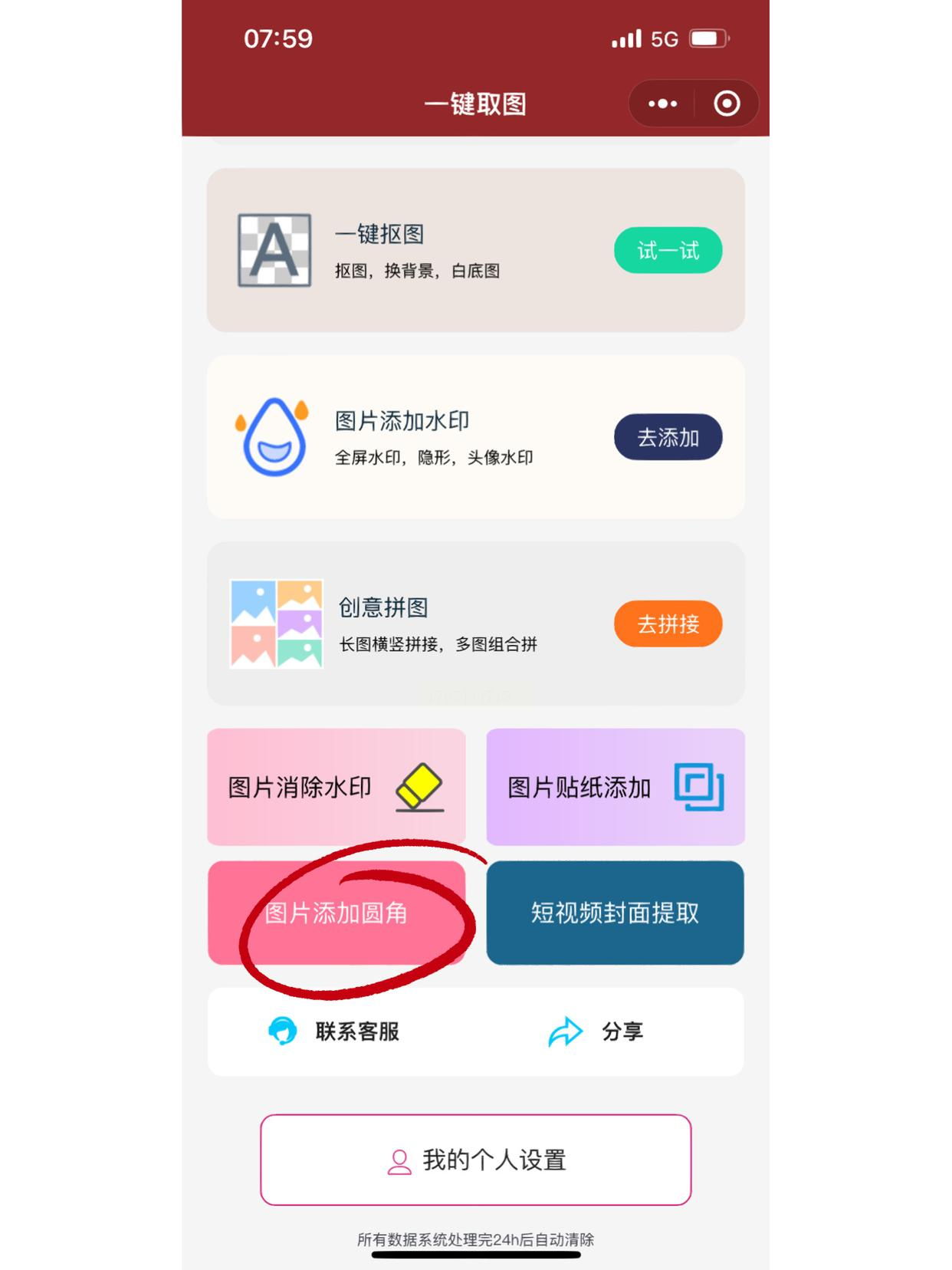 2. 在小程序的主界面或功能列表中,仔细查找类似于“图片编辑”、“图片加圆角”或“圆角裁剪”等功能选项并点击进入。