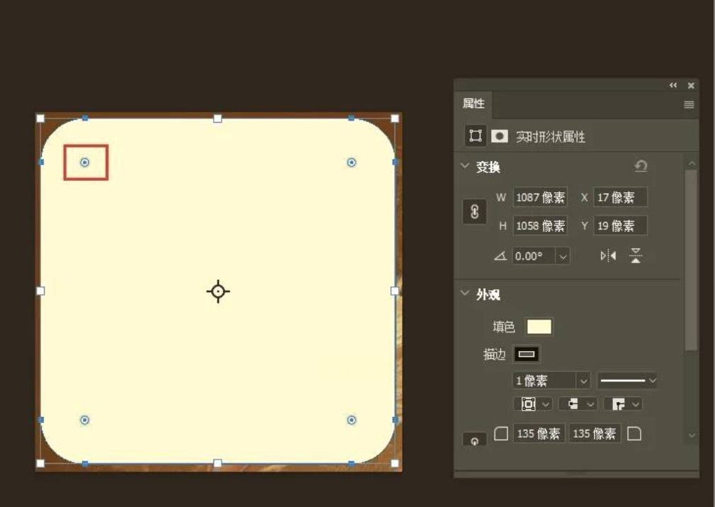 4. 拖动这些控制点,可以直接交互式地调整圆角的弧度大小。调整时能实时看到效果变化。