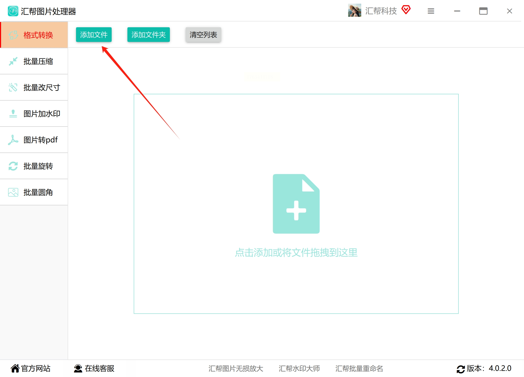 1. 在电脑上下载并安装“汇帮图片处理器”软件,完成安装后启动程序。