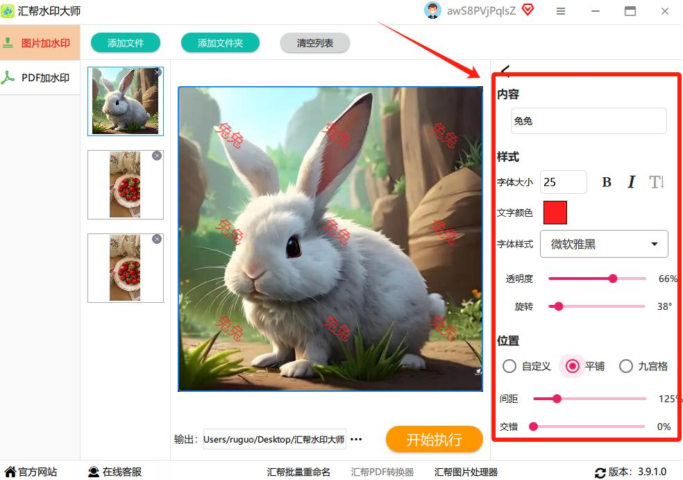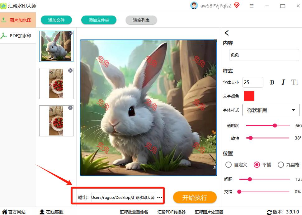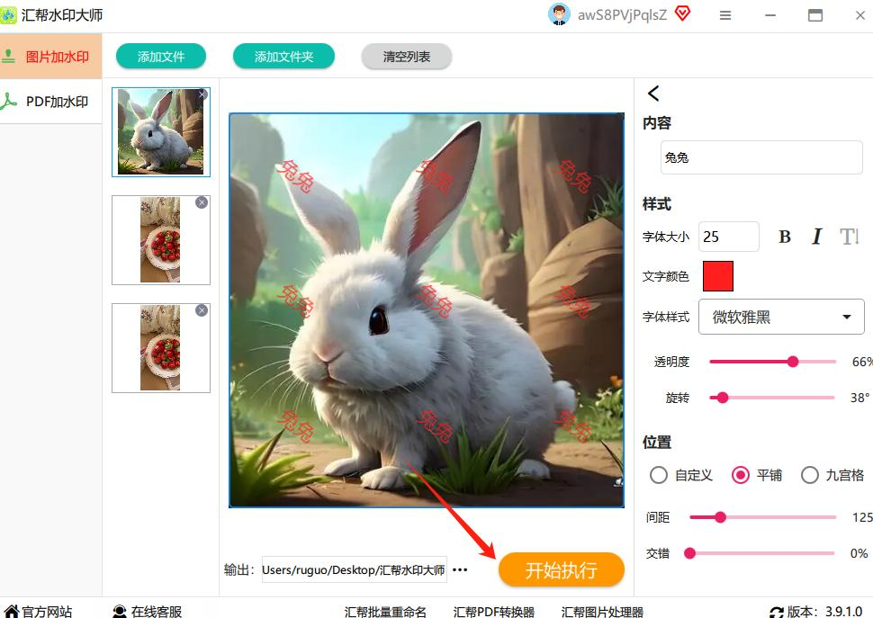 确认所有设置无误后,点击“开始执行”按钮。软件会自动为所有图片批量添加水印,处理过程中会显示进度条,让你了解当前处理状态。