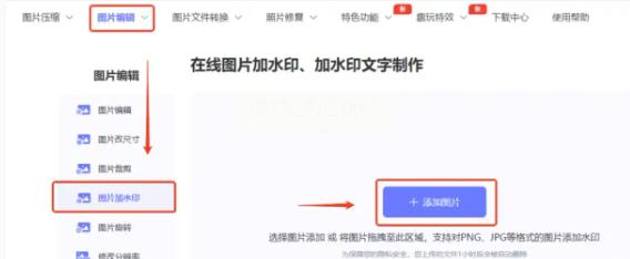 - 图片水印:如果需要添加Logo,点击“图片水印”,上传本地的图片文件。上传后,调整图片大小、位置和透明度,使其与原图协调。