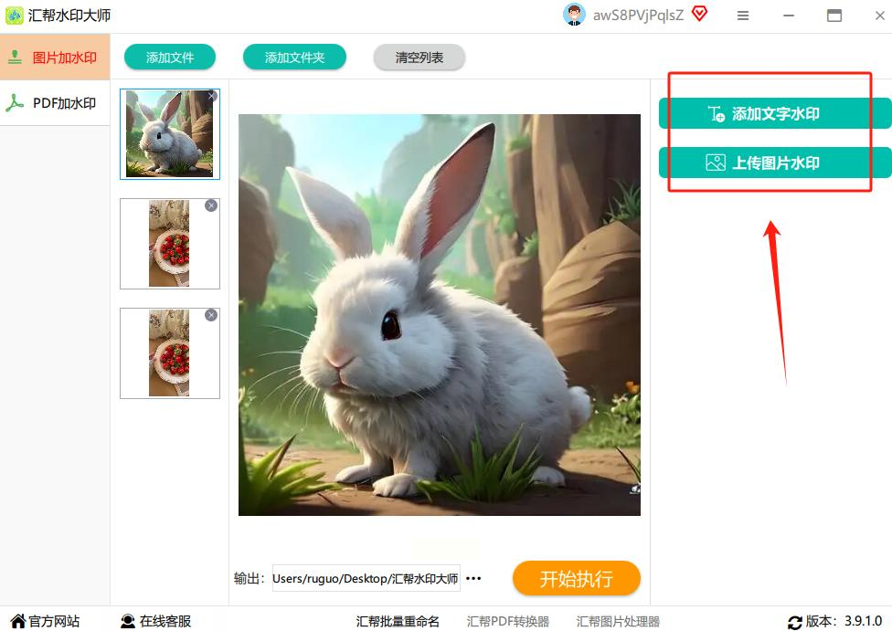 导入图片后,接下来要决定加什么类型的水印。汇帮图片处理器提供两种主要选择: