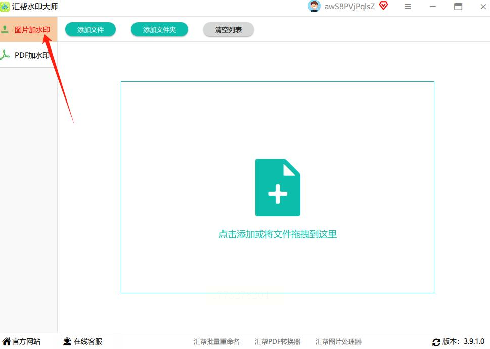 打开汇帮水印大师软件,点击界面上的“添加文件”按钮,或者直接将图片文件夹拖拽到软件窗口内。它支持一次性导入数百张图片,非常适合大量图片的处理。