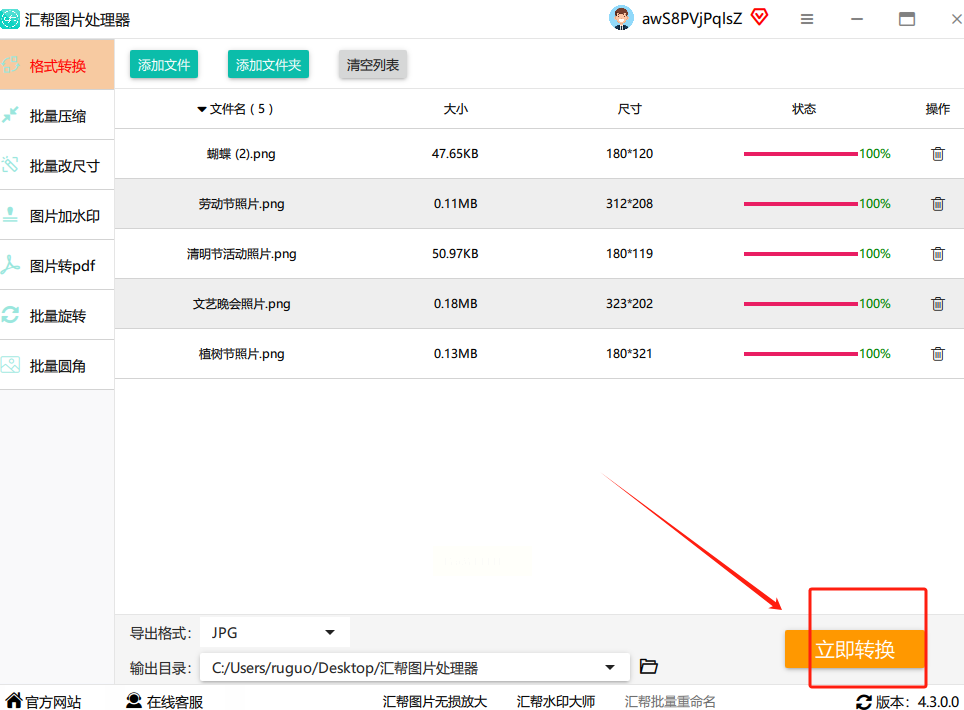 确认格式和位置都设置好后,点击右下角的“立即转换”按钮,软件就开始工作了。这时候你会看到进度条在跳动,还能看到每张图片的转换状态。如果同时转换多张图片,进度条会显示整体完成百分比,让你心里有数。
