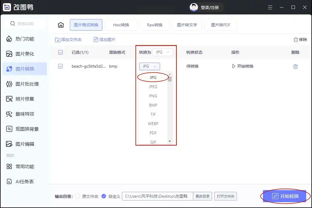 改图鸭是一个专注于图片处理的在线平台,提供多种图片格式转换功能。