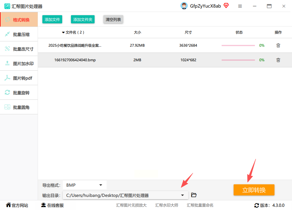 点击主界面的“添加文件”按钮,或者直接将BMP图片拖拽到软件窗口中。支持批量上传,一次可以处理多张图片,非常方便。