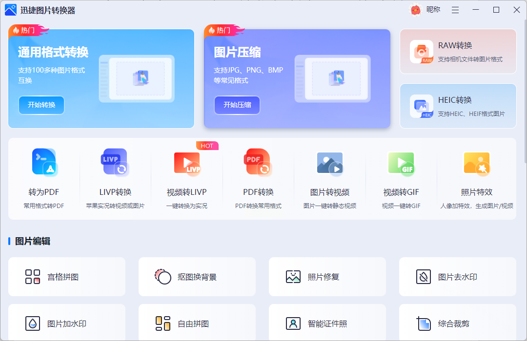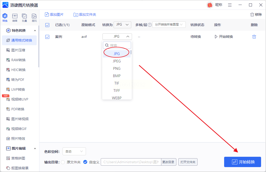 1. 选择「通用格式转换」模块,上传AVIF图片