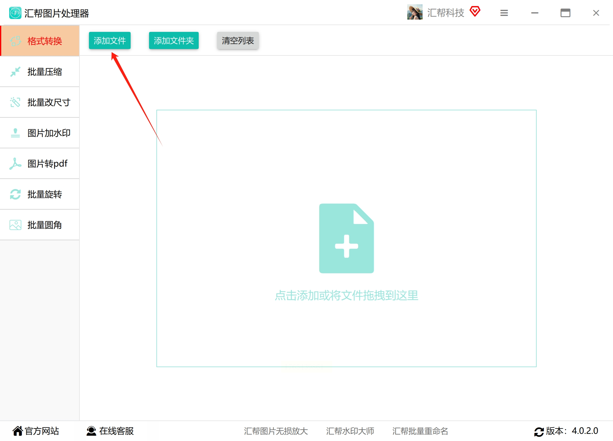 2. 文件导入:点击"添加文件"按钮,通过文件选择窗口导入图片。支持jpg、png、webp等主流格式,也可直接拖放文件夹至软件界面。若需批量处理,可勾选"批量添加"选项,一次性导入数十张图片。
