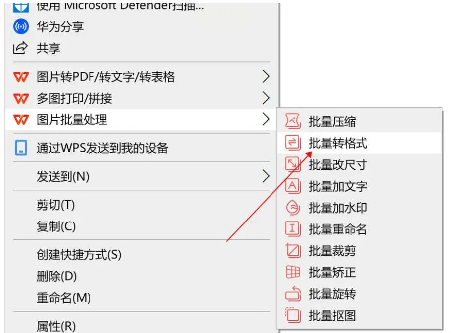 2. 右键点击,在菜单里找“批量格式转换”之类的选项(WPS版本不同可能位置略有差异)。
