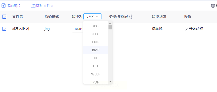 3. 设置输出格式:在格式选项中找到“BMP”,有些平台默认输出格式是PNG,记得切换过来。这里可以注意下是否有“图像质量”选项,BMP是无损格式,一般不用调整质量,但如果需要压缩可以适当降低。