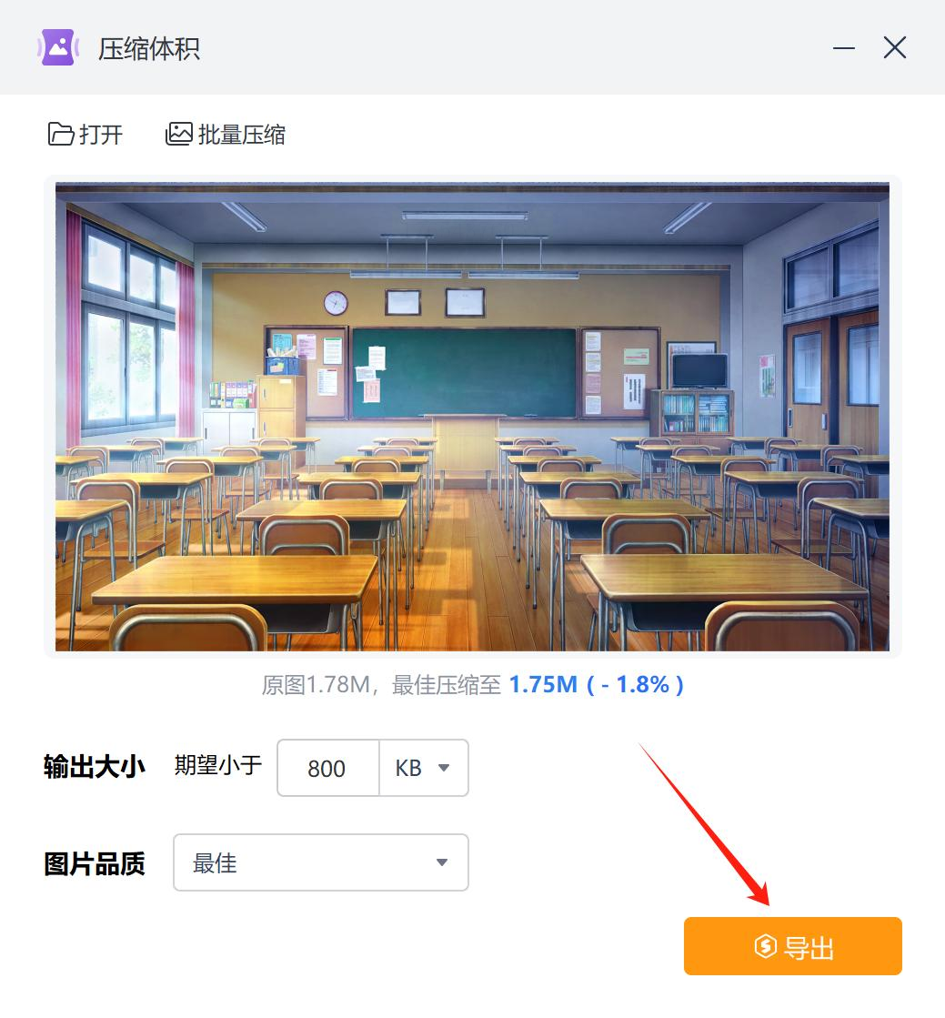 * 压缩目标:你可以选择“文档输出”(针对文档内图片优化)或“图片文件”(直接生成新图片文件)。