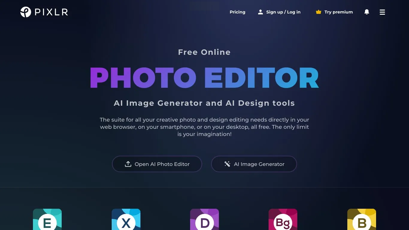 步骤一、打开Pixlr官网,选择适合的编辑器版本并上传SVG文件;