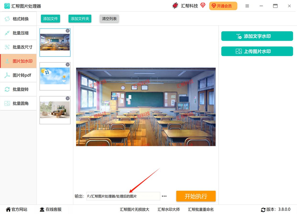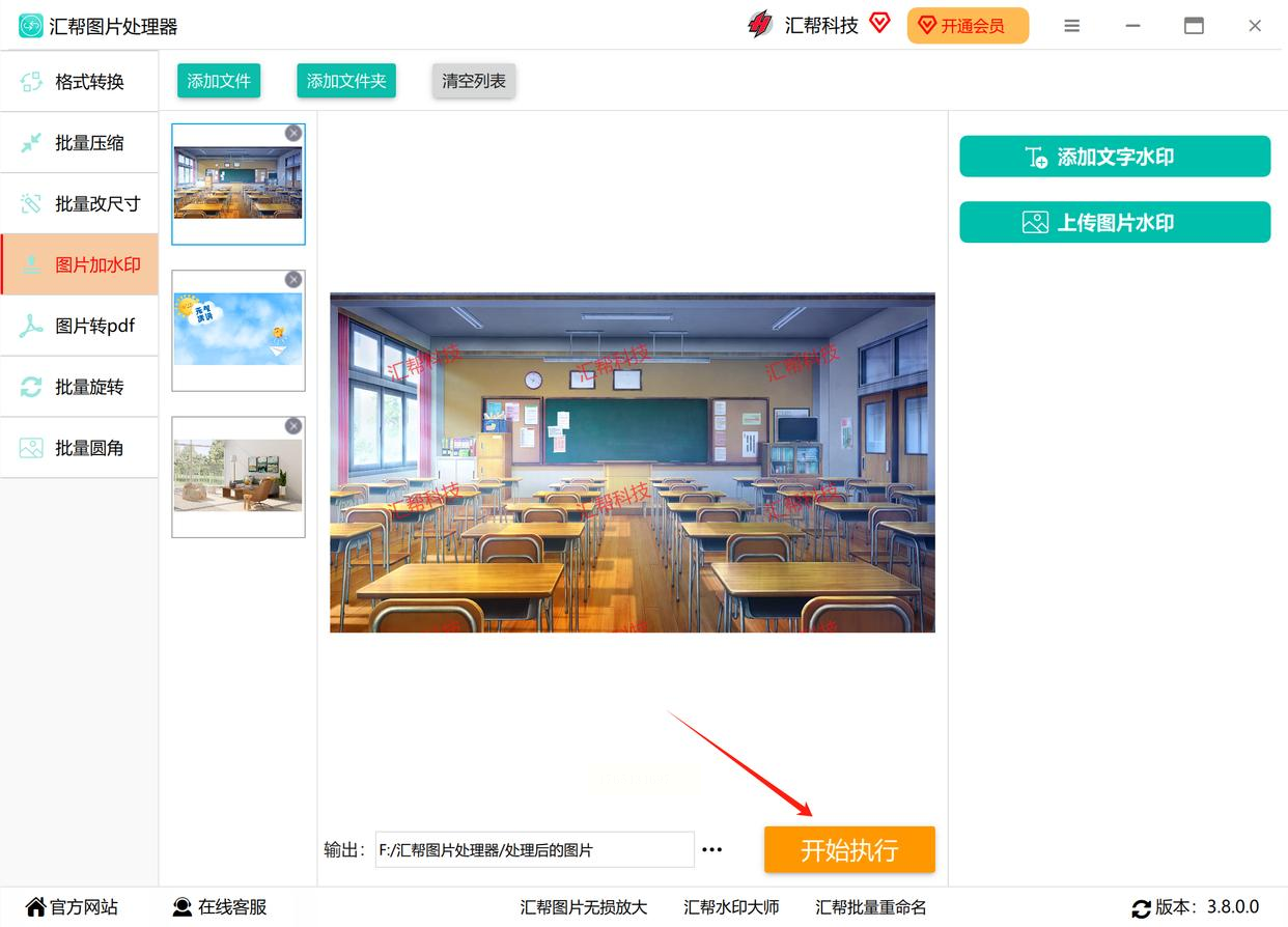 - 点击右下角「开始执行」按钮,系统将自动处理所有导入图片,状态栏会显示实时进度