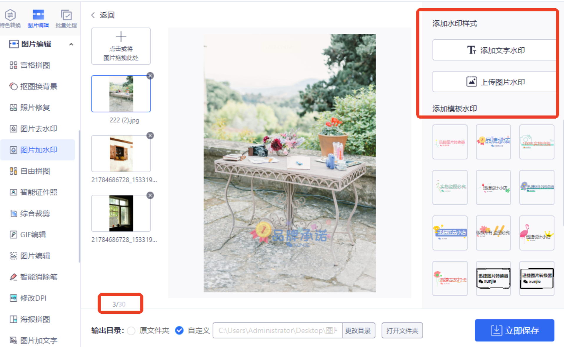 - 点击「+添加图片」上传Logo或水印素材,支持PNG透明底格式