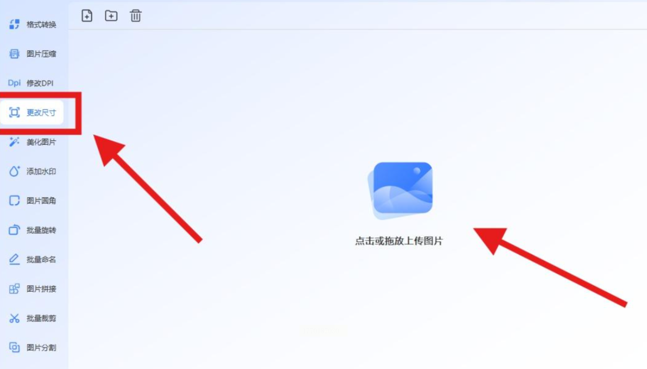 步骤一:在左侧工具栏找到「更改尺寸」,点击进入主界面。