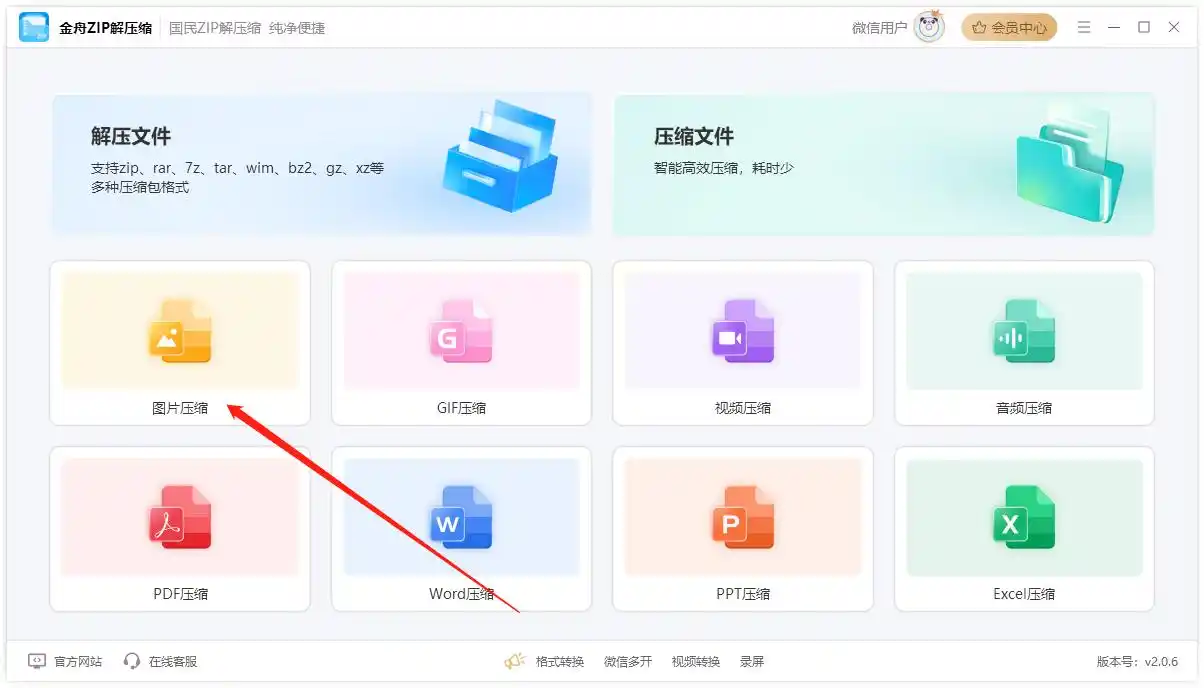 步骤一:打开软件后,选择「图片压缩」功能。